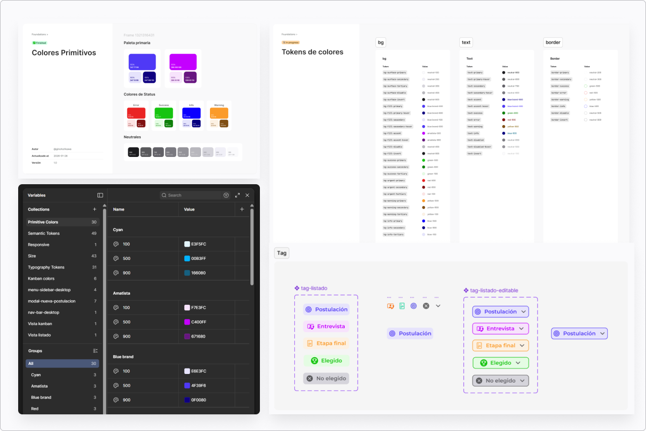 Para dotar al proyecto de una base sólida que asegure la consistencia y escalabilidad a nivel visual y funcional se preparó un Design System que contempló desde los Foundations hasta componentes y templates de las vistas.