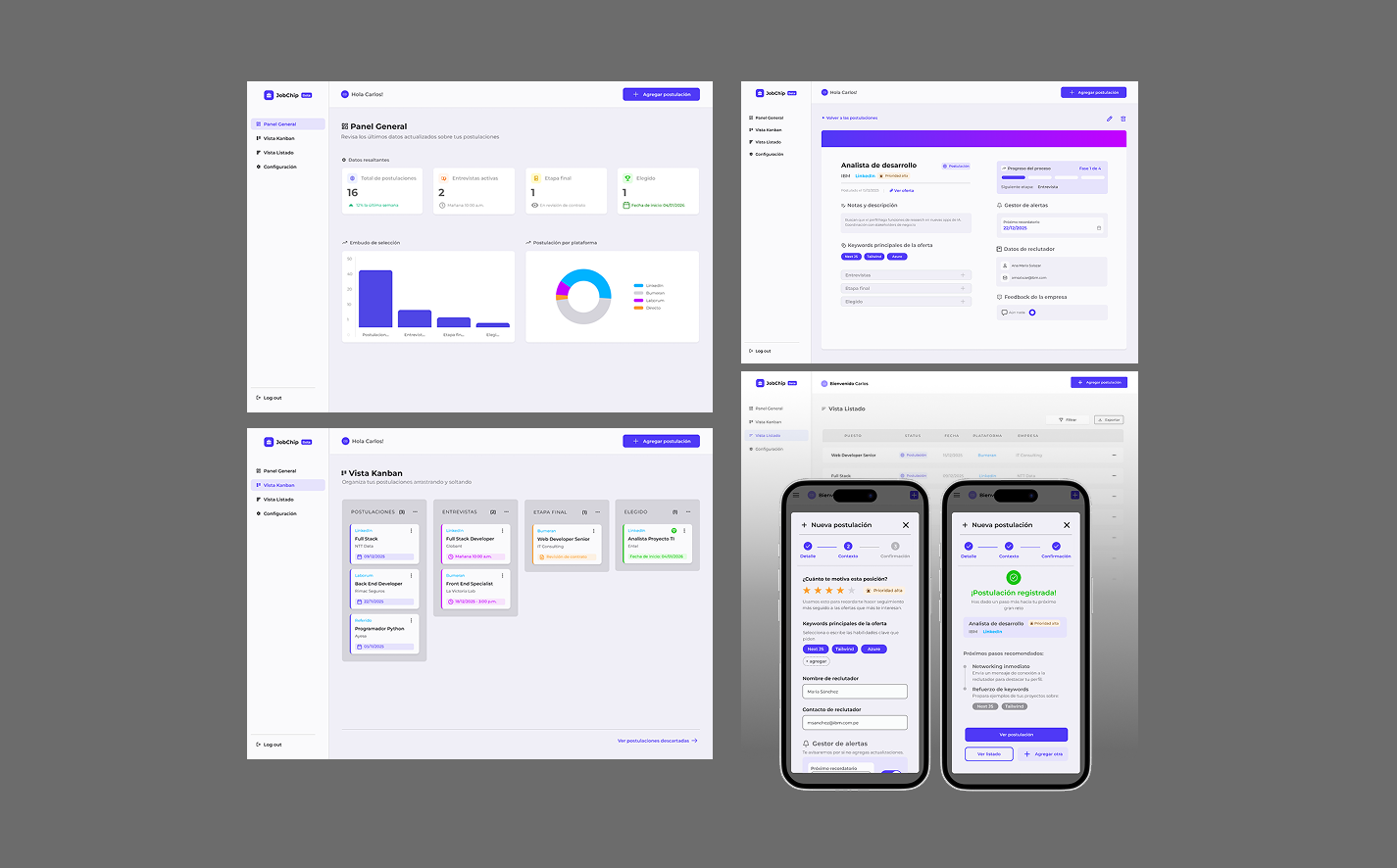El proyecto se define como un gestor inteligente de carrera diseñado para devolver el control al usuario en un entorno de búsqueda de empleo a menudo opaco y asincrónico. Un "Personal Job Application CRM" (Gestor de Postulaciones) que resuelve el caos mental del usuario sin depender de que las empresas cambien su forma de actuar. El usuario toma el control de su propia data.