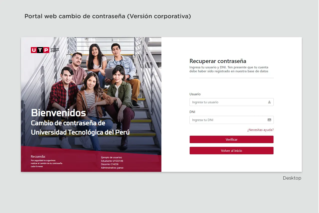El reto de diseño: Rediseñar un portal para que esté dirigido solamente a estudiantes, descartando a usuarios docentes y colaboradores, donde pueda restablecer la contraseña que utiliza para acceder a las diferentes plataformas educativas que la universidad le ofrece.